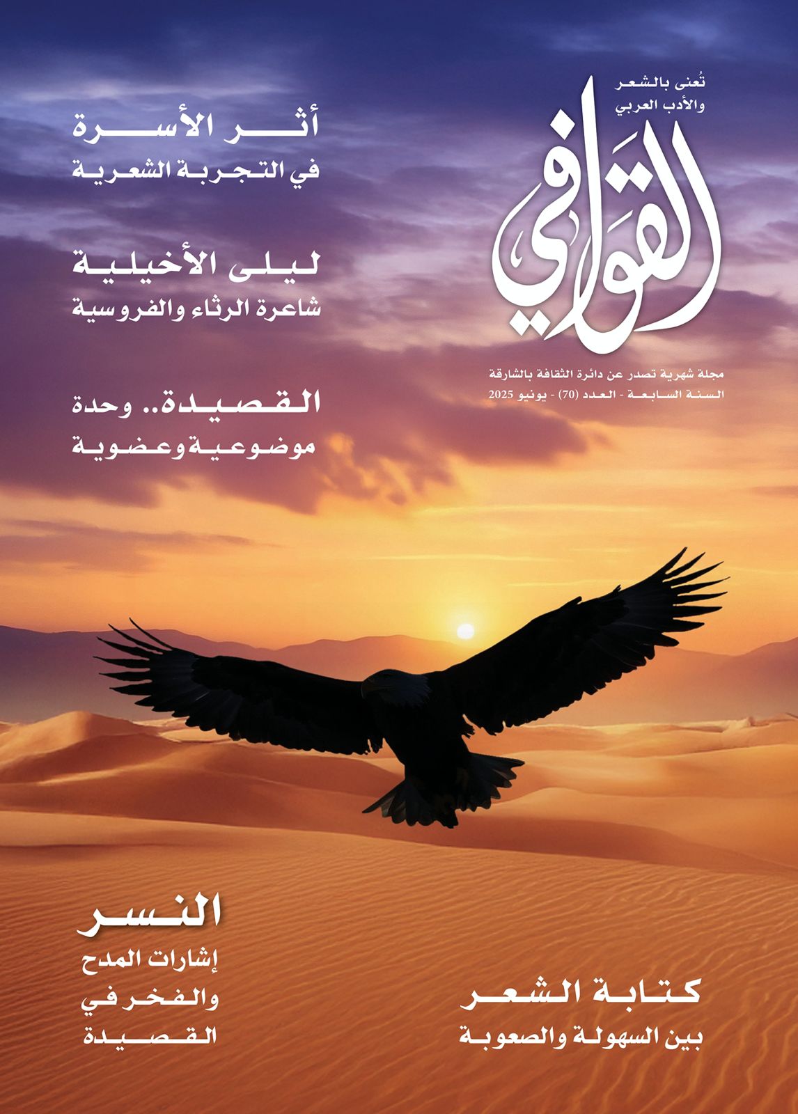 خبر صدور العدد (70)، يونيو 2025 من مجلة القوافي- الشارقة
