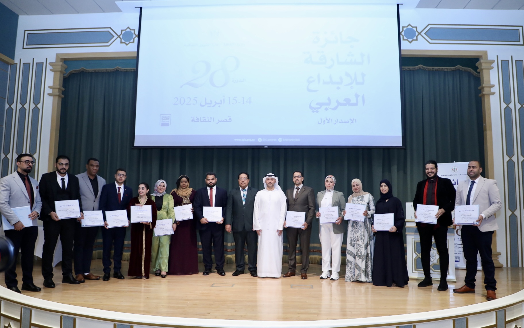 تحت رعاية صاحب السمو الشيخ الدكتور سلطان بن محمد القاسمي، عضو المجلس للاتحاد حاكم الشارقة، انطلق صباح الاثنين، حفل تكريم الفائزين بجائزة الشارقة للإبداع العربي في دورتها الـ28، ورشة الإبداع الثامنة والعشرون لجائزة الشارقة للإبداع العربي (الإصدار الأول)، التي تنظمها إدارة الشؤون الثقافية في دائرة الثقافة في الشارقة، على مدى يومين خلال الفترة من 14 إلى 15 إبريل 2025، بمشاركة (470) مشترك من مختلف الدول العربية، وبعض دول إفريقيا مثل نيجيريا ومالي.