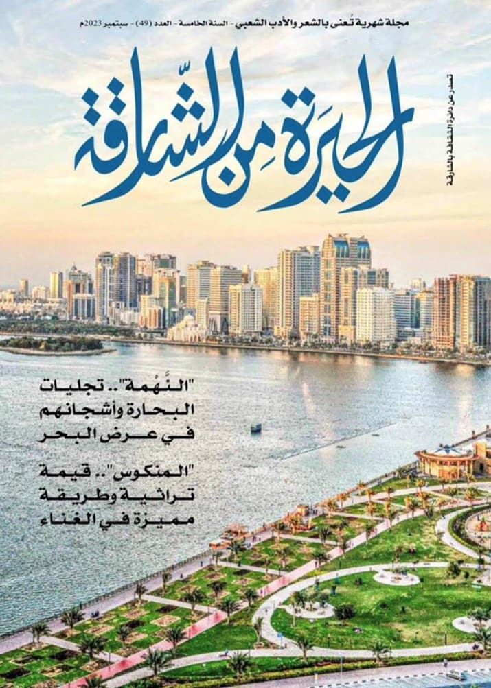صدر عن دائرة الثقافة بالشارقة العدد التاسع والأربعون من المجلة الشهرية المعنية بالشعر والأدب الشعبي"الحيرة من الشارقة"، مشتملًا على العديد من الدراسات والتجارب الشعرية، إضافة إلى باقة من القصائد والأشعار وقراءة ألوان من الشعر النبطي والشعبي في الخليج والبلدان العربية.
