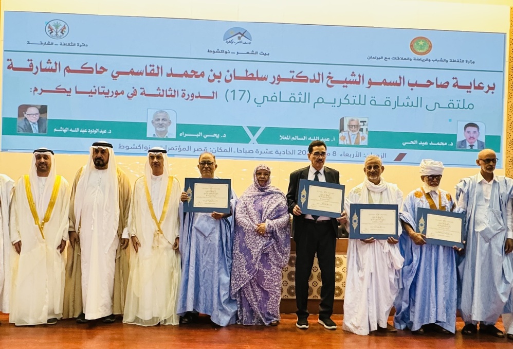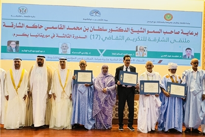 تحت رعاية صاحب السمو الشيخ الدكتور سلطان بن محمد القاسمي عضو المجلس الأعلى حاكم الشارقة؛ شهدت العاصمة الموريتانية نواكشوط النسخة الرابعة عشرة من ملتقى الشارقة للتكريم الثقافي الذي احتفى بـ"4" أدباء موريتانيين، هم: الأديب محمد ودادي، والشاعر د. أحمد امبيريك، والناقدة د. مباركة بنت البراء، والروائي د. محمدو احظانا.