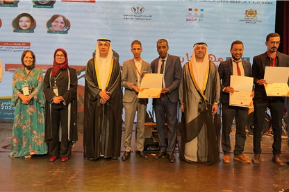 The opening ceremony was held at Meydene Hall in the heart of Marrakech, in the presence of H.E. Abdallah bin Mohammed Al Owais, Chairman of the Department of Culture in Sharjah; Mr. Mohammed Ibrahim Al Qaseer, Director of the Cultural Affairs Department; Mr. Samir Al-Wanassi, Regional Director of Cultural Affairs at the Regional Directorate of the Culture Sector – Marrakech-Safi, representing H.E. Dr. Mohammed Mehdi Bin Saeed, Moroccan Minister of Youth, Culture, and Communication; Mr. Rashid El Mostafa, Head of Cooperation at the Ministry of Culture, Youth, and Communication; and a large audience of writers, intellectuals, and lovers of poetry.